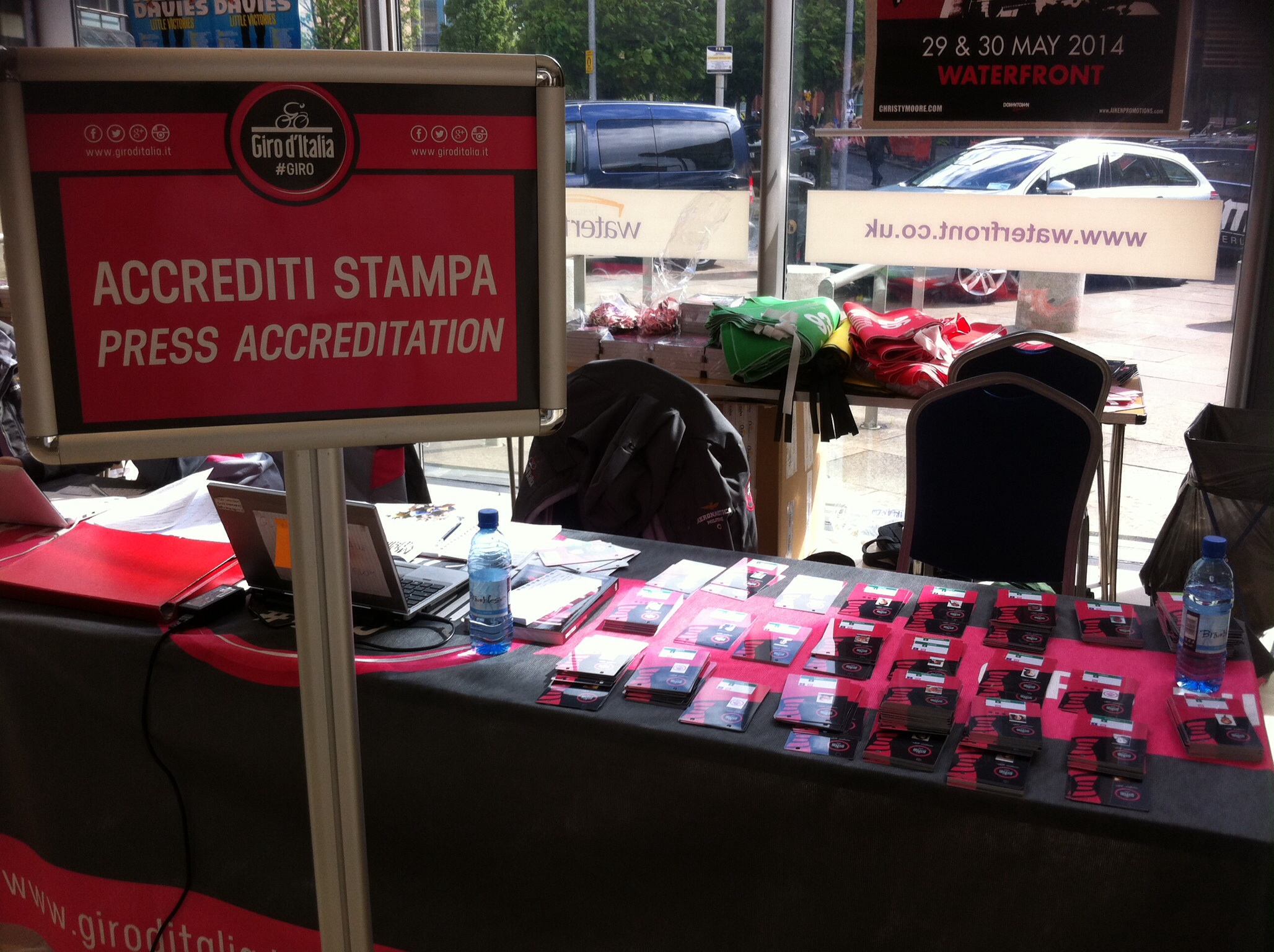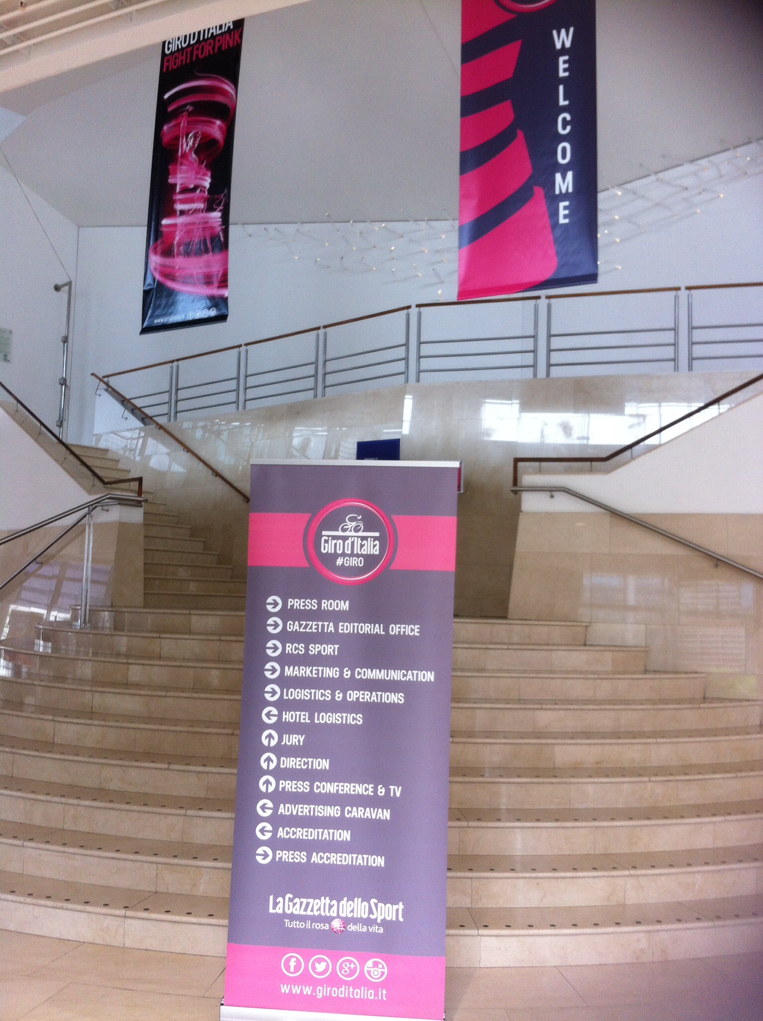 Today, clad with pink painted nails, I headed for The Waterfront Hall, the HQ for the Giro’s event management company, RCS sports.