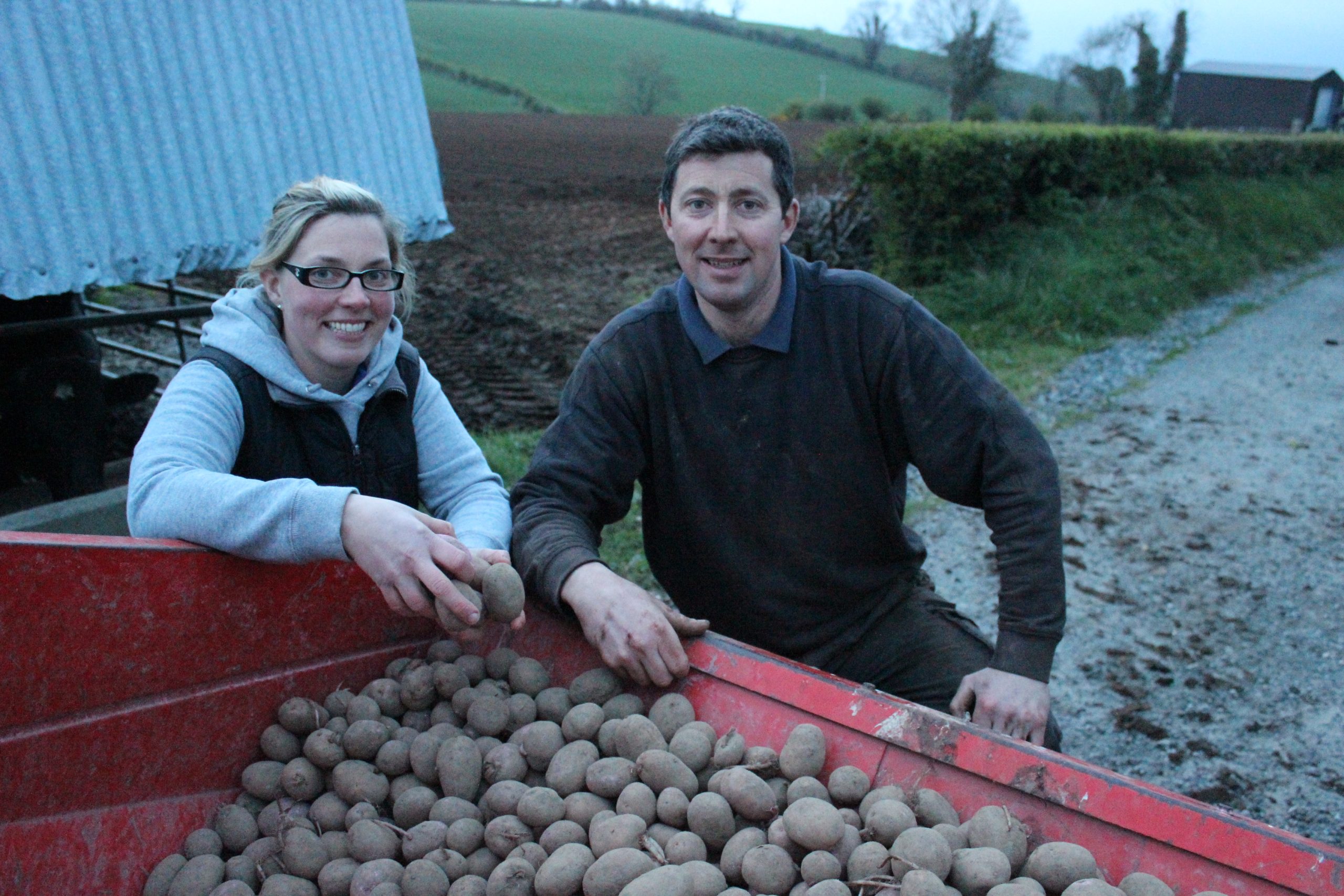 My sister, Rosemary, runs the family business processing the potatoes, JMAC Fries, a company my late father, John, formed in 2005. With a bit of coercion, I got a picture of my two siblings beside the planter as light was fading on Friday 25th April.