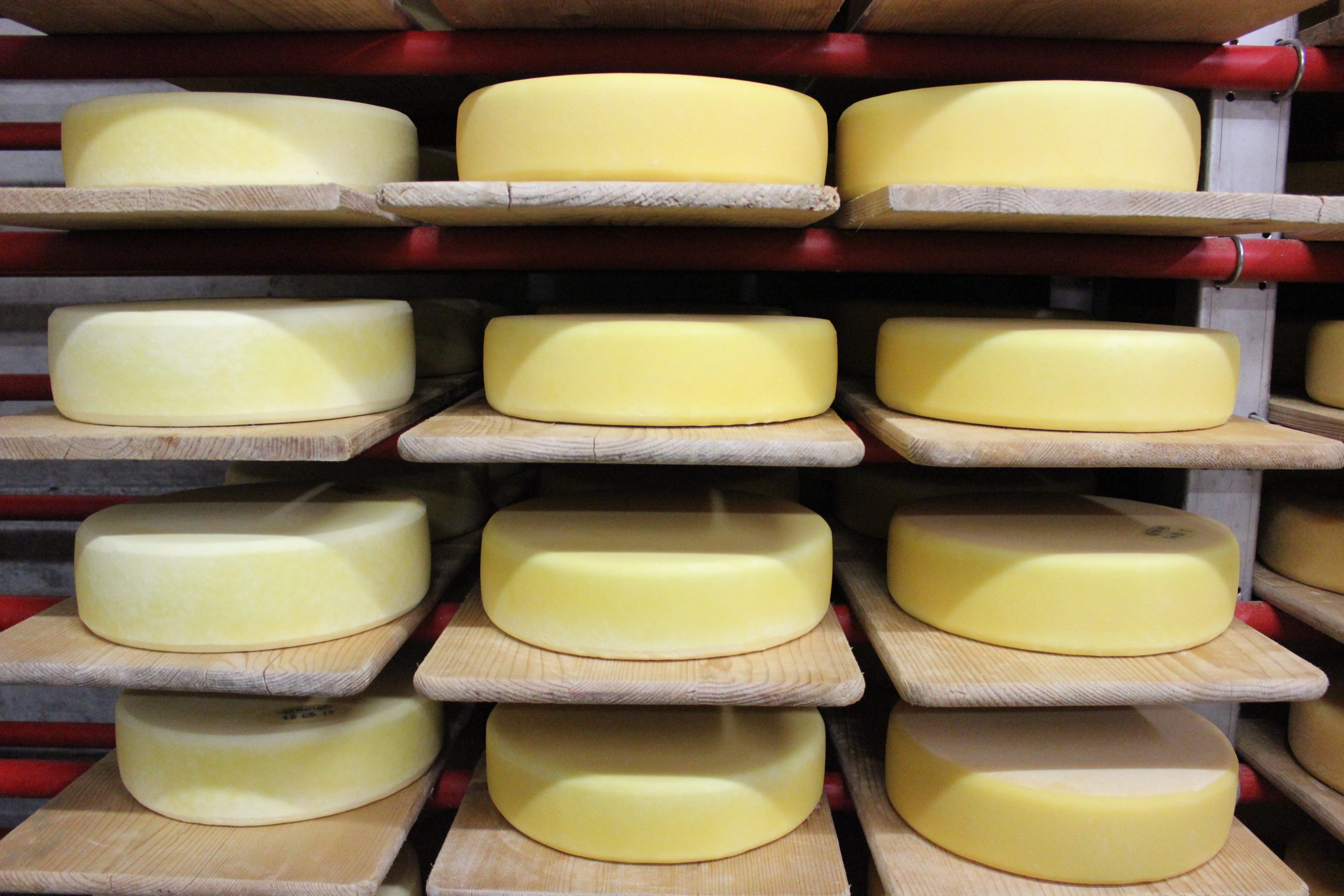 Alpine pastures grow up to 100 different herbs and grasses creating a unique taste in dairy produce. A cheese may only be designated as Alpkäse (alp cheese) if the milk production and cheese-making take place on the Alp itself. As opposed to mountain cheese, alp cheese is a seasonal product which is only produced from May until September. Every year about 5,200 tons of alp cheese are produced in 1,450 different alp cheese dairies in Switzerland. The day before, we had a tour of one based on Alp Abnistetten, 1,250m above sea level. The Theiler family run the farm which has 36 dairy cows and 16 young cattle. In the summer, they turn 650 litres of fresh milk into cheese, butter and cream.