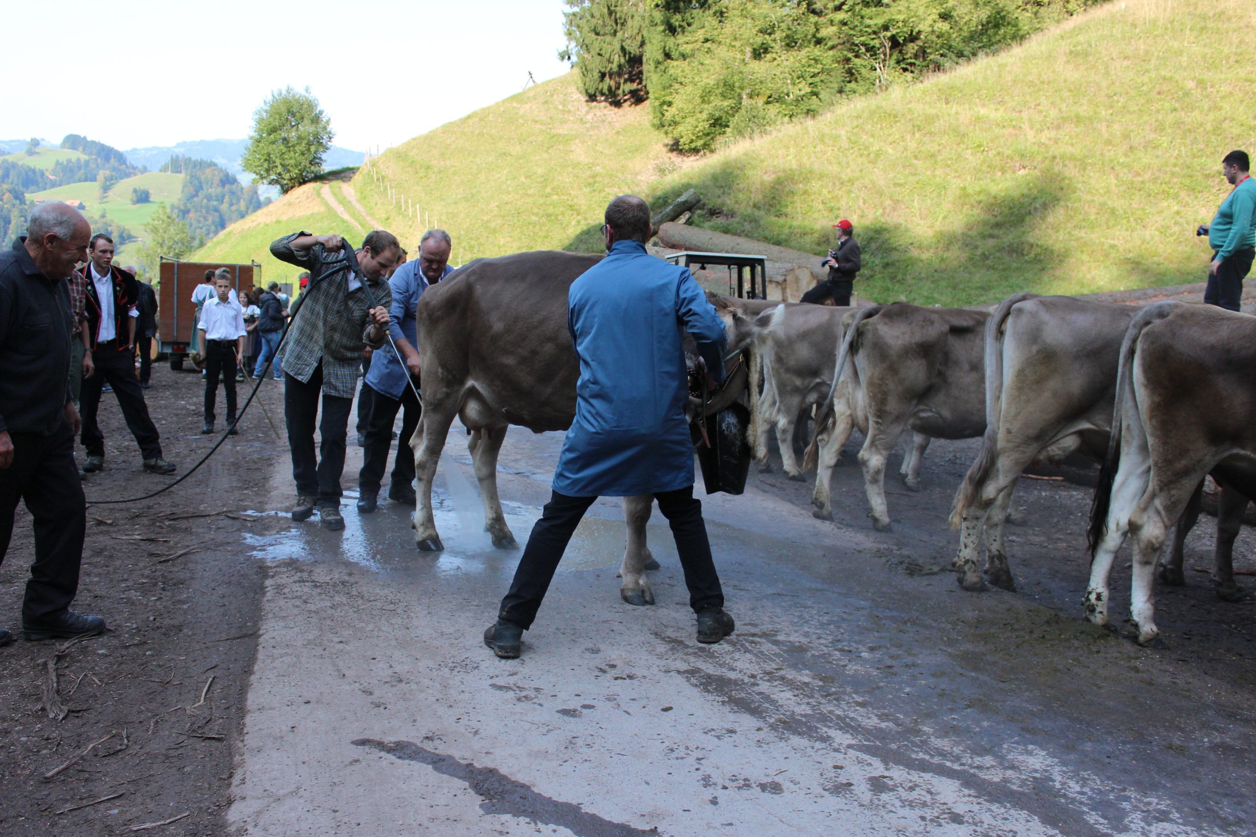 - Preparing the cows for the public parade in Schüpfheim