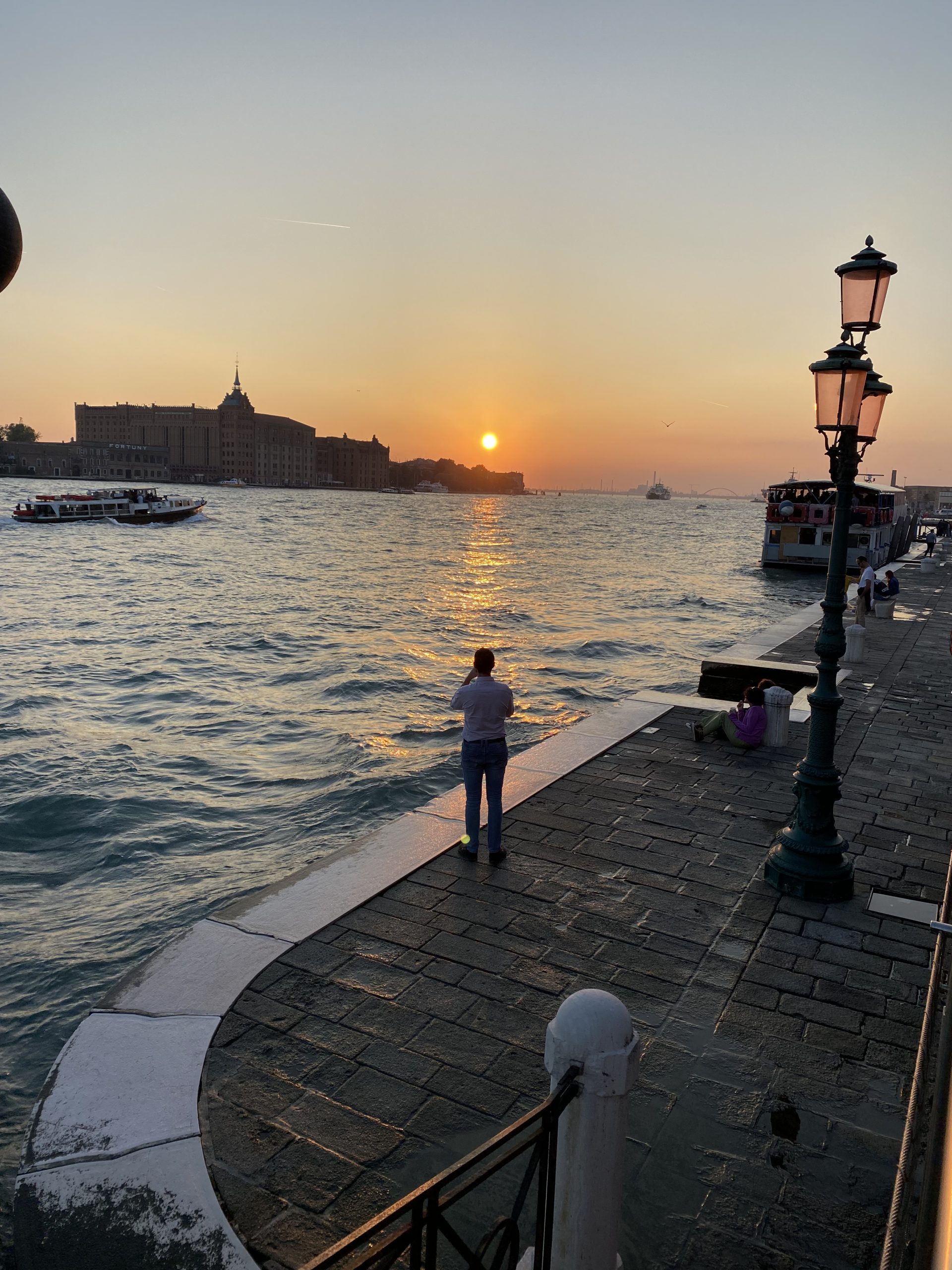 We catch an amazing sunset – at 6.30pm – as the sun goes down behind the Mulino Stucky – once a flourishing flour mill and pasta factory, supplied by boats across the lagoon. It is internationally recognized as one of Italy’s iconic pieces of industrial architecture and now operates as a Hilton hotel. Whilst we don’t have time to take a gondola (around 80EUR) or see St Mark’s Square – I am happy to have an excuse to come back to Venice!