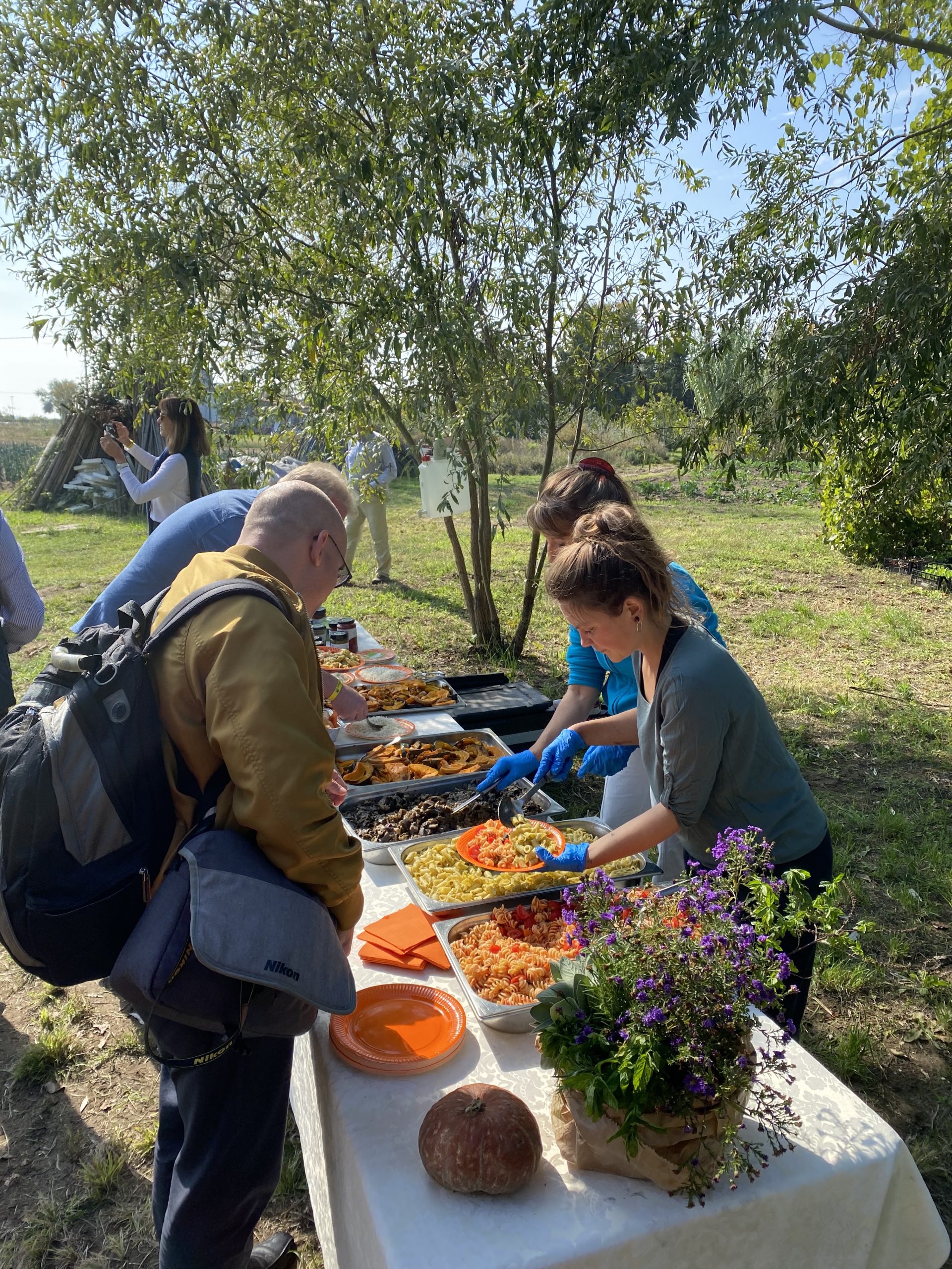 As our time as a group of forty journalists comes to an end, we celebrate in one of Silvio’s fields with an alfresco lunch served by his wife and some employees. Growing up on a potato farm, I have had many a lunch in an open field but not as glamorous or beautiful as this. We sit down at tables and chairs with the sound of Prosecco corks popping fills the air! Oh that Ireland would develop a taste for bubbly refreshment in the middle of a hard day’s work. Alas, our climate is more suited to tea but it was a wonderful experience sampling the pasta sauces made on the farm as well as the roasted pumpkin and aubergines.