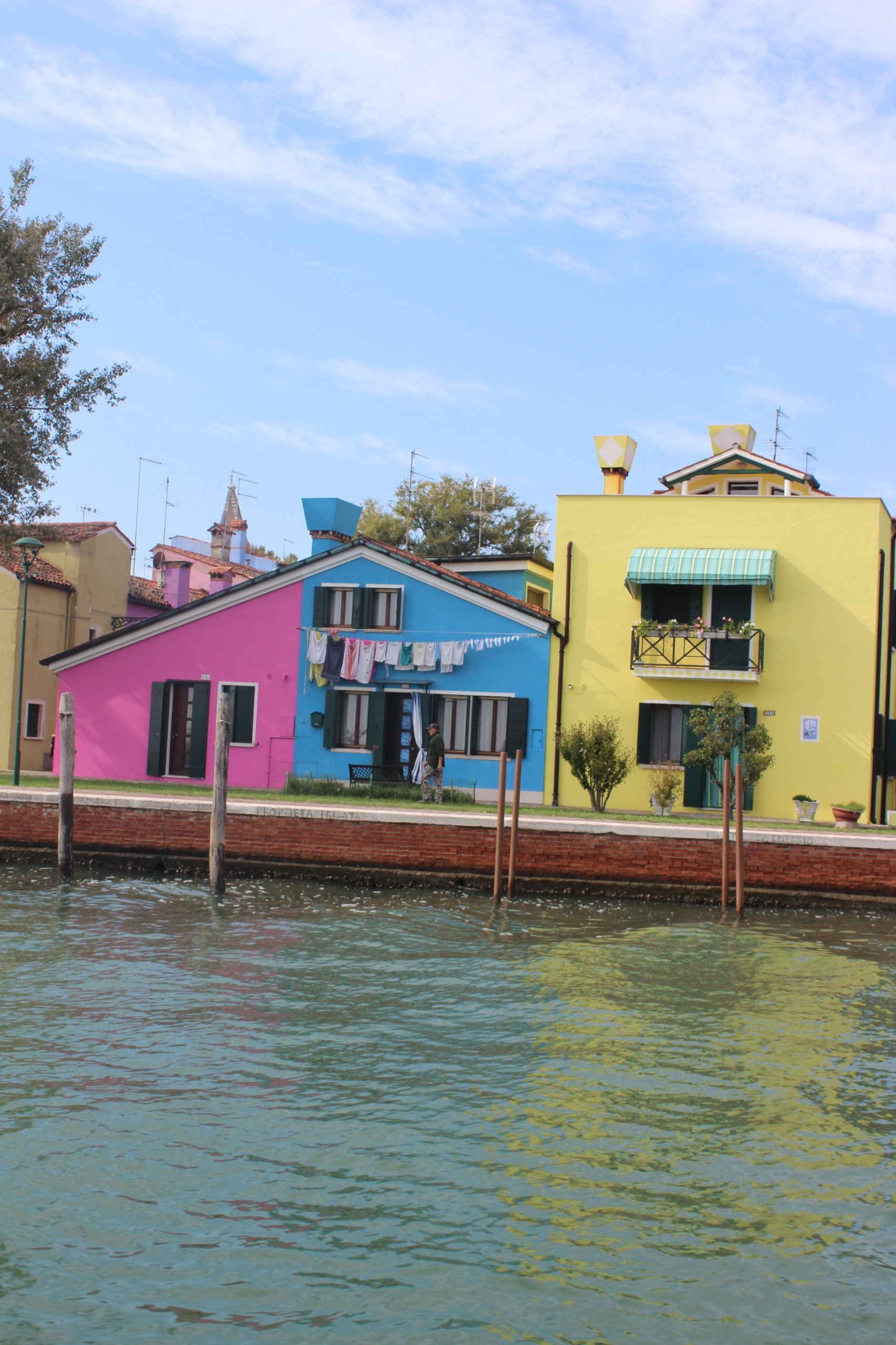 Back on the boat, we catch a glimpse of Burano with its kaleidoscope of coloured buildings, a miniature but brighter Venice also made of a myriad of canals and bridges, often called Italy’s rainbow island.